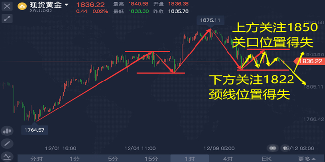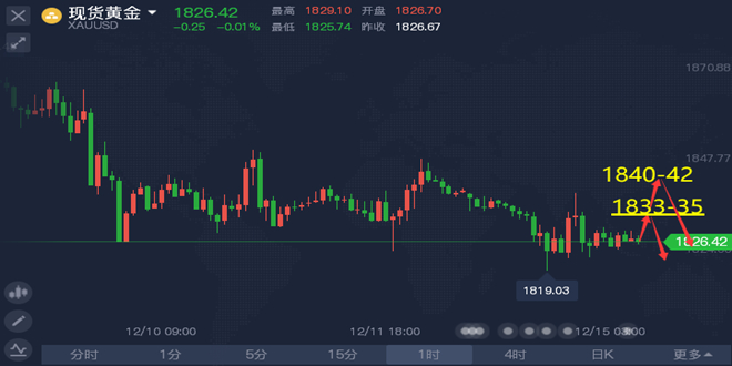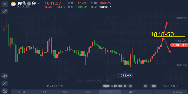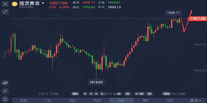 走过的是时间,看过的是行情,尝过的是盈与亏,回味的是得与失,沉淀的是经验,成就的是境界,苦辣酸甜感慨万千,淡然处之、与市无争、万事不忧、烦事不思、遇利不贪、遇险不乱、按部就班、运筹帷幄、步步为营、方能身处乱市一切尽在掌握,稳步前行。反之,若只贪恋利润,无视风险,激进好战,死扛到底,则必败。市场走势,千变万化,只有与时俱进,跟随趋势,方能立足。另外,投资市场是一个出现奇迹,相信奇迹,并创造奇迹的地方,获利是需要一套完善的系统,等到掌握这套完善的系统之后,市场将不再捉摸不透,而是成为我们的朋友。 黄金行情分析: 周二(12月15日)亚市现货黄金开盘震荡上涨打破此前开盘下跌的节奏,亚市尾盘,现货黄
