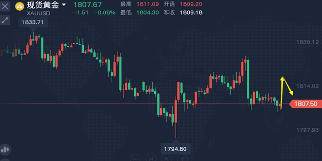 愿所有的等待,到最后都会不期而遇。只要你愿意等。就像雪国等待天晴,像我们等待止盈。等风也等你!有一种等待叫宁缺毋滥,有一种期待叫走出震荡。在暴涨暴跌的行情中,想必很多人抓住了机会,也或许有人错失了机会。不管怎么样,市场一直在这里,只要你还在这个市场上,你的坚持,你的等待终将会迎来意外的收获,今天的获利代表不了明天,今天的亏损也延续不到明天。“伸手需要一瞬间,牵手却要很多年,无论你遇见谁,他都是你生命该出现的人,绝非偶然”。谭鑫晟每写一篇文章,也是希望能遇到有缘人,我能帮助到他。佛度有缘人,我带有心人! 黄金行情分析: 昨日现货黄金先扬后抑,最高触及1825区域,最低在1805一线。其主要因素