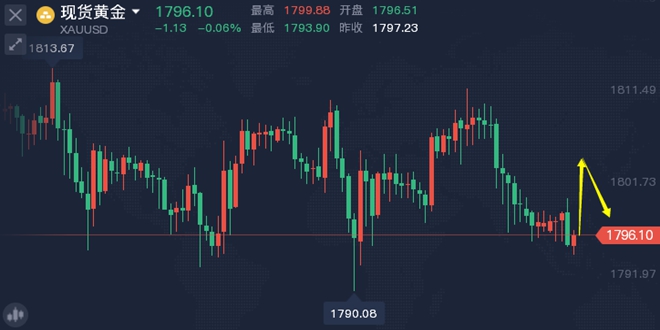 愿所有的等待,到最后都会不期而遇。只要你愿意等。就像雪国等待天晴,像我们等待止盈。等风也等你!有一种等待叫宁缺毋滥,有一种期待叫走出震荡。在暴涨暴跌的行情中,想必很多人抓住了机会,也或许有人错失了机会。不管怎么样,市场一直在这里,只要你还在这个市场上,你的坚持,你的等待终将会迎来意外的收获,今天的获利代表不了明天,今天的亏损也延续不到明天。“伸手需要一瞬间,牵手却要很多年,无论你遇见谁,他都是你生命该出现的人,绝非偶然”。谭鑫晟每写一篇文章,也是希望能遇到有缘人,我能帮助到他。佛度有缘人,我带有心人! 黄金行情分析: 周三,现货黄金再现冲高回落走势,金价最高触及1813区域之后出现下跌,一直