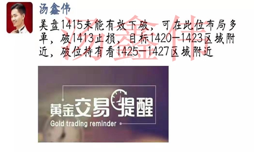 投资之路漫长,随波逐流者多之!然不谋全局者不足谋一城,市场风云,变幻莫测,定其心,观其势,谋定而后动,不乱于心,不困于情,运筹帷幄之中,方能决胜千里之外。怀疑能过滤风险,但也同样能错失机会,要想抓住机会,就要勇于尝试。若胸无大志,纵使贵人相助,也终将难成其事。作为一个合格的投资者需要谨记,大部分时间应该以观望为主,耐心等待最佳的时机,需要避免频繁进场,操作上不要试图抓获所有波幅,也不要奢望对每一段行情都判断正确,应该少而精! 资讯解析: 周三,现货黄金触底回升,在险些失守1400关口之后迎来一波V型反攻,受到抄底买盘的蜂拥而上,大幅逆转,多方处于完全的控制地位。在疲弱的房屋数据公布后,黄金连