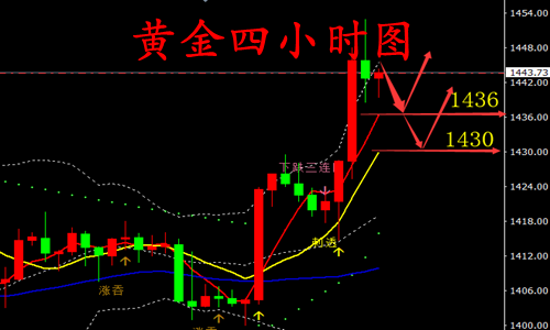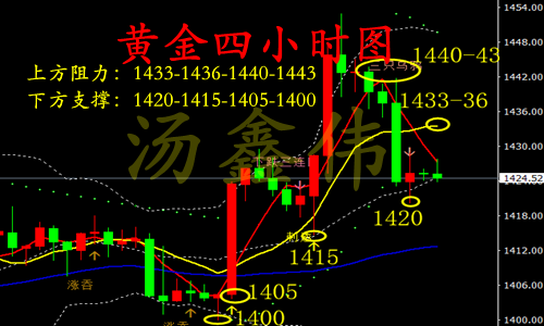 投资之路漫长,随波逐流者多之!然不谋全局者不足谋一城,市场风云,变幻莫测,定其心,观其势,谋定而后动,不乱于心,不困于情,运筹帷幄之中,方能决胜千里之外。怀疑能过滤风险,但也同样能错失机会,要想抓住机会,就要勇于尝试。若胸无大志,纵使贵人相助,也终将难成其事。作为一个合格的投资者需要谨记,大部分时间应该以观望为主,耐心等待最佳的时机,需要避免频繁进场,操作上不要试图抓获所有波幅,也不要奢望对每一段行情都判断正确,应该少而精! 昨日行情回顾: 本周二国际黄金经历过山车行情,日内跌幅一度达1%,但黄金维持区间震荡。周二早间金价维持低点支撑位1424一线窄幅横盘,随着亚盘中国期货市场开盘金价扩大跌