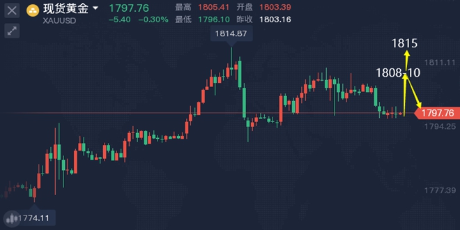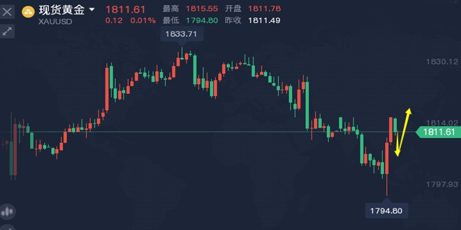 人生总是在做选择,也总是在等待结果,道路不可能也是一帆风顺,总会有坎坎坷坷,平庸不是每个人都追求的目标。投资市场,也是如此,不可能顺风顺水,而暴利都是每个人追求的梦想,但路途总会有各种诱惑和陷阱。走惯了震荡,总要被单边洗盘扼杀,这是市场的规律。面对人生,我们在做选择,坎翻不过去,可以绕道,河淌不过去,总要借助别的办法,而市场,也是如此,不要一味追求操作,有些行情,你看见利润,但未必能获取利润,做自己看的懂的行情就是最好的交易方法。 黄金行情分析: 周一,现货黄金走了一波探低回升,黄金从高位1817附近回落一度失守1800大关最低触及1794-1795区域附近,之后美盘前出现反转并快速拉升,美
