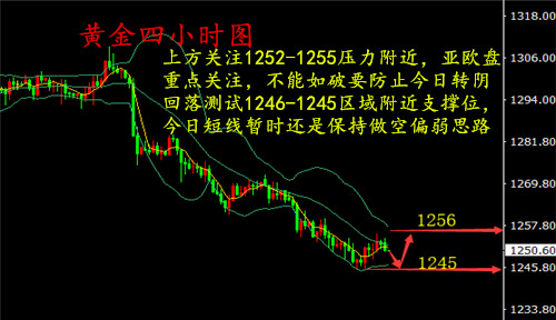 基本面: 现在的行情就是美元跌黄金不涨,美元涨黄金就跌,利好黄金的消息面也难让黄金重拾涨势。之前我们都认为黄金会抓住美元走弱的机会迎来一波反弹调整,无奈黄金还是上涨无力。美元也在连续三个交易日的回落后隔日重新展开反弹,就目前而言美元目前上涨动能并不充足,特别是对于95关口的突破无法真正的有效企稳,日线甚至有见顶的迹象。现在就是要看美元在此番调整后一旦能够重拾涨势,黄金必然会进一步承压下跌。当前我们需要关注美元在95关口上方的阻力压制情况,一旦再次企稳此位置有望继续刷新高,而黄金将进一步下跌。 黄金行情分析: 黄金现在是反弹无力,连阴下跌,关键支撑失守,强势刷新低。黄金隔日空头再次上演一出让人