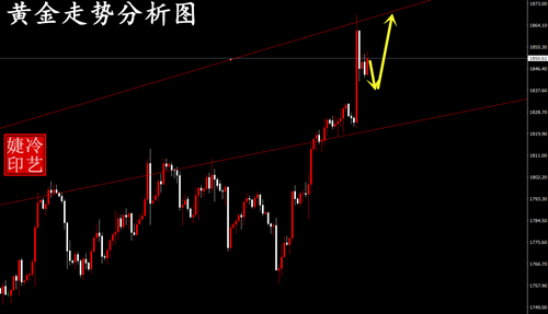 操作上实事求是,杜绝弄虚作假”大家好,我是冷艺婕老师(添加冷老师即刻给出每日操作思路精准策略) 黄金周线收成饱满中阳线。日线则是形成连阳强势上涨,同时拉动均线指标拐头金叉向上形成支撑,日线属于破位后的续量上涨阶段。维持在1833上方的上涨结构不改。4小时维持在此前回测修正的支撑点1842上方整理摸高,从K线结构来看,上周单根大阳线突破1833临界点之后,一直维稳在此位之上运行,边整理边修正,多头防守点在单阳K线底部支撑18322.而强弱临界点则是1842一线。此前两根回踩启稳,本周先在此位之上维持看多头摸高。支撑依旧在1848-1850附近。本周看好修正在蓄势破高。 黄金:(1)回撤1848
