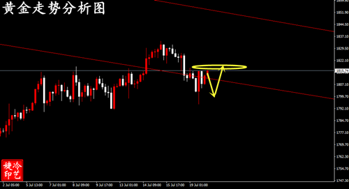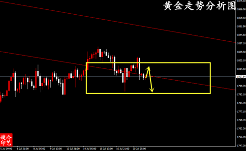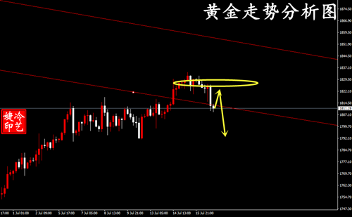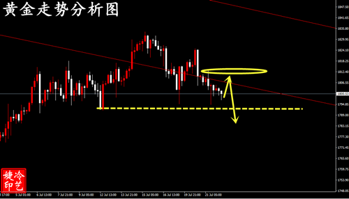 操作上实事求是,杜绝弄虚作假”大家好,我是冷艺婕老师(添加冷老师即刻给出每日操作思路精准策略) 黄金下周趋势单解析: 黄金周五的冲高回落也是在碰到了黄金分割50%的位置之后出现较大幅度的回落调整。从目前的走势看这个反弹应该告一段落了,短线开启的回落应该是针对1750~1834一整波上行的回落修正,因此可以将1750~1834合并为上行的第一波走势,1834开启的是回落的第二波走势,至于回落的潜在目标位需要参考黄金分割给出的几个支撑位,以及结合之前上涨中出现的盘整区间形成共振点。以上的结论给出了主体思路就是下周先继续看空。 下周黄金延续昨晚的跌势,反弹干空,黄金一小时k线再次展现头肩顶的结构,