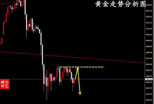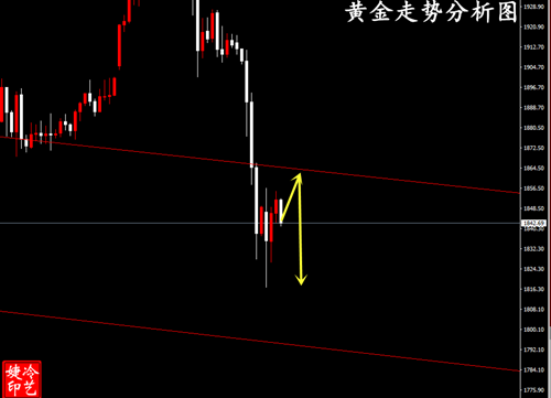 操作上实事求是,杜绝弄虚作假”大家好,我是冷艺婕老师(添加冷老师即刻给出每日操作思路精准策略) 黄金小阴十字K线整理收。从日线的收盘来看,暂缓了反弹的力度,以横向整理代替反弹修正为主。局部进入震荡修正,趋势看空不变。初步确定了震荡高点的受阻点,预计是在1865-1870之间,后市再反弹的力度也不会太大,惯性的上探后仍会承压回落。 目前来看初步的上轨压力在1865.而下轨在1828-1818之间,从日线的收盘来看,弱势整理后市仍有较大机率破低下行。只是下破的时间不确定,目前的位置离低点还有一定距离,短线可能还会反复测试上轨的压力。小一点的震荡区间1840-1870.大一点区间1800-1880