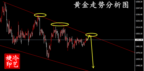 冷落金屏山十二,艺是针神貌洛神,婕妤下辇辞荣日”大家好,我是冷艺婕老师(添加冷老师即刻给出每日操作思路精准策略) @全体 昨日黄金日评中给出1495附近强势看空下方1483-1480成功!没有套路,只有清晰的策略,明确的点位!多就是多,空就是空,没有模棱两可,没有偷点漏点!当别人在不断吹嘘过往时,我们早已成功拿下利润!市场的声音永远是当下的,任何人,无论前面多么辉煌,在当下的市场中什么都不是! 黄金昨日的区间预期基本都在剖析之内,日图最终收盘在中阴线,收在了低位。日图仍处于下行趋势线中走回落调整,而周线则是受到了5周线的压制,昨日为什么要强势在1495-1496附近看空,主要日图和周图调
