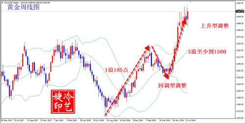 冷落金屏山十二 艺是针神貌洛神 婕妤下辇辞荣日”大家好,我是冷艺婕老师( 添加冷老师即送现价单以及中长线布局单 ) 黄金当前强势上涨的过程中依然有人看空,正确时时机做正确的事!现在只能多,至于说行情多次突破1450区域未果后转跌,那也是后边的走势才能决定的,不能因为长得太多就去做空,事实证明,强势上涨过程中,做空只是一厢情愿!目前的整理是蓄势,是为了再次突破! 黄金上周周线大阳收高,从周线的收盘情况来看,大阳线收得饱满,初步将此前的上影线收复,由于上影线受阻后,金价一直持稳在高位整理。虽盘中出现回落的形态,但最终还是被消息的利好化解。反复拉锯中转换。最终收在了高位。周线图依旧多头偏强。日图箱