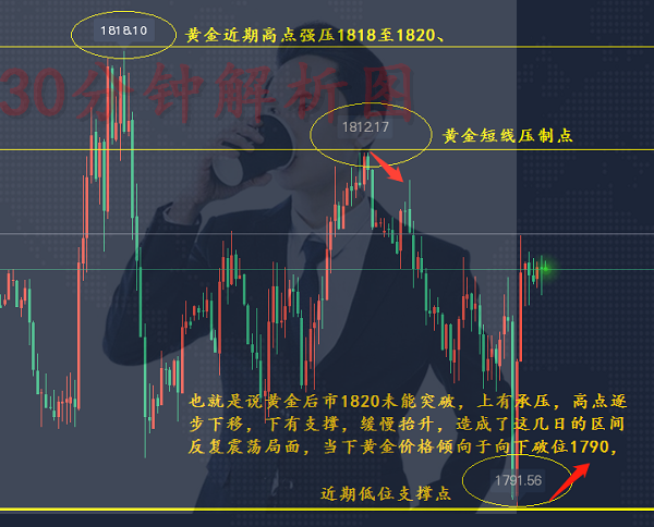 文章摘要:2021.7.14 黄金原油最新走势分析及操作建议、7.14黄金还会涨吗?7.14黄金后市存在哪些风险?7.14为什么投资黄金原油总是亏损?7.14 黄金看涨看跌?7.14新手炒现货黄金应该注意什么?7.14怎么去了解去学习炒黄金呢?7.14现货黄金投资正确入场时机如何把握?7.14新手炒黄金需要知道那些常识?7.14黄金暴涨后还会延续暴涨? 近期对投资不理想或爆仓深夜独自痛苦的朋友?可以关注张鑫瑞朋.友.圈,跟着老师日进斗金; 周二复盘: 黄金这两天的走势也是让人神鬼莫测,时不时给你来一个探底V反,也让散户的朋友容易摸不清楚短期趋势, 所以不管怎么走, 目前还是没有突破盘整压力
