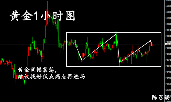 每天都是一个新的开始,不要带着昨天的悲伤来浪费今天的光阴,调整好心态来迎接崭新的一天!在这个市场上没有规划的投资无异于在大海上漂浮的一只小船,随时都有翻船的可能,投资并不会因为你是弱者而享受优先待遇,大浪淘沙,沉者为金,卷残风云,“剩”者为王,打有准备的仗我们才能存活下去。不要因一次盈利而忘乎所以,也不因一次失利而痛不欲生,投资看的是整体利益,不卑不亢,不急不躁,总会在市场上搏得属于自己的利润!下面本人陈召锡为你带来简单的一篇文章,希望可以帮助您。 黄金行情走势分析 目前黄金从日线图来看,布林带目前低位整体平行发散运行,黄金短线围绕1414-33区间震荡。四小时来看黄金早盘下
