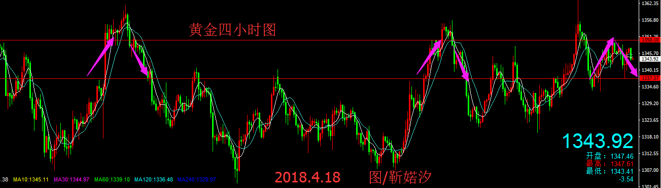时间过的好快呀,一眨眼又到了每周的最后一个交易日周五,也是我们常说的黑色星期五;每次到这个时候我们都会对这周前面行情做个梳理归类总结,这样能够更好的跟随和把握行情的运行节奏,更好的预判未来: 这周的行情整体来说就是反复的震荡,整个来看这周波幅并不大。上方高点1356,下方低点1337,全周波幅28美金左右。周一