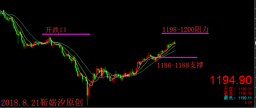 每次特朗普的出现总能给我们带来“惊喜”;上日特朗普炮轰美联储,大放厥词,在共和党筹款活动上对美联储加息表示失望,抱怨鲍威尔不是他料想中支持低利率政策的美联储主席,同时表示如果美联储继续加息,他将批评美联储,美元闻讯急挫,黄金急升; 这下真的得好好感谢特朗普,给黄金带来了新的希望;昨日美元急挫,跌破了96关口,黄金则是趁机反弹,一举拿下了1190关口,这是继上周五以来的第二次反弹上涨,这给黄金后市反弹增加了一些动力和能量;反弹归反弹,咱们还是不能当成行情的反转,这点已经说了很多次了,希望大家记住了! 黄金整体还是处于跌势中,在金价没有攻克1200大关口之前咱们还不能看涨黄金,这是个分水岭;