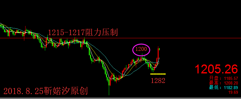 大雁南飞了,苹果红了,梨也熟了,太阳公公的脾气变得温和起来,舒服极了,又是一丰收季节;蔚蓝色的天空,秋高气爽,一尘不染,晶莹透明,又是一周末;周末的你在干嘛呢,不如跟上婼汐的步伐,看看本周的“硕果”以及下周的“摘果计划”吧! 先来说说本周的“硕果”行情:周一、周二行情延续上周五反弹行情,不断的上冲前方压力位,连收两连阳,日线也形成了三连阳;周三金价看似很强,但整体还是震荡,先是震荡下行,午夜探底回升,上冲1200大关口,但却以败告终,继续回落收尾阴线;周四金价震荡下行,距1200大关口越来越远,还一度下挫到1180一线,给日线增加一根阴线;昨日周五开启大反抽,站上1200大关口,上冲1208