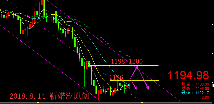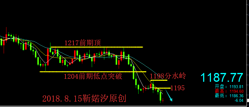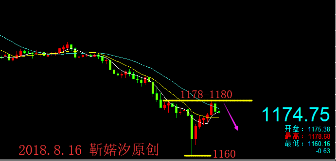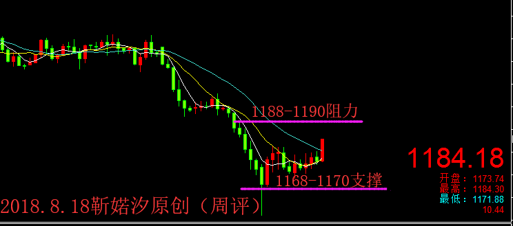 今天是个特殊的日子,七月七,七夕情人节,在此祝大家七夕快乐,有情人终成眷属!今天是本周的最后一个交易日,每到这个时候咱们都会对本周行情进行归纳总结梳理,这样才能更好的跟随和把握行情的运行节奏,更好的预判后市行情: 本周行情可谓是轰轰烈烈,经典中的经典:周一行情冲破前期低点1204的支撑,结束了上周1204-1217的区间震荡行情,收根大阴线;周二金价保持1200关口下方运行,1200-1190区间震荡,续收阴线;周三市场出现土耳其“恐慌”危机,金价延续空头趋势,跌跌不休,一度触及1170一线;周四“恐慌”危机蔓延,早盘黄金“闪跌”一度失守1160关口,随后市场风险情绪抬头,黄金止住跌势重返1