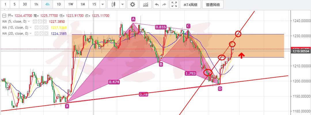 文/朱金禹撰(vx:zjy6679;助理qq:1744354320) 文章概要:1.黄金消息面解析;2.金禹个人解析;3.黄金走势分析及操作建议;4.黄金解套策略; 黄金消息面解析: 美元走软对黄金价格构成支撑 丹麦盛宝银行(SaxoBank)首席大宗商品策略师OleHansen表示:“鉴于市场普遍存在的不确定性,股市走软往往会对黄金市场构成支撑。另外,美元走软也在增加支撑。如果美元进一步走软,金价可能会进一步上涨。” Hansen还说:“上周黄金价格走势测试了1200美元/盎司后,部分涨势是受美联储可能会从加息的激进立场上退却的市场预期推动。如果这一信号增强,我们可能会看到美元失去一些动能