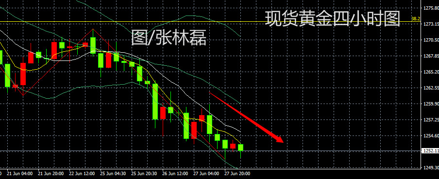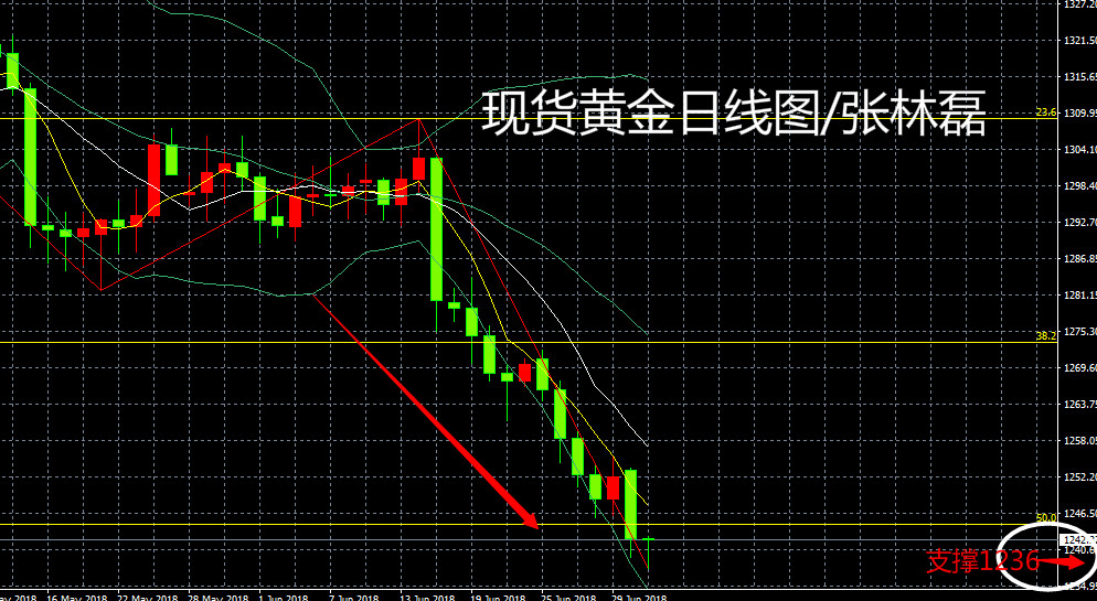 张林磊:美指背离继续调整,物极必反切忌盲目追空 周二(7月3日)亚盘时段,黄金开盘小幅反弹,但随后延续跌势下破新低1238一线。昨日黄金再遭抛售,盘中交易时段一度跌破1250及1240两大关口。由于全球贸易紧张局势升级,美联储进一步加息的前景刺激对美元的需求,这也导致了美元的强势表现,加速金价的疲态跌势。 美元走强黄金怎么看:在美元走强、英国退欧谈判缺乏进展的背景下,英镑/美元跌至1.3094。英国首相特雷莎·梅所属政党内部就退欧后处理与欧盟海关事务的计划争吵不休的消息,打压英镑走低。英国6月Markit制造业采购经理人指数为54.4,略低于预期的54.6,该报告对英镑没有帮