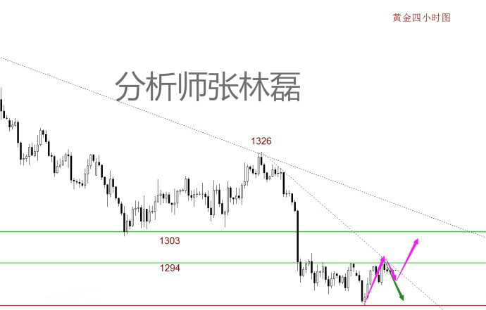 张林磊:5.21周一黄金早间操作建议,千三关口中线空 【黄金走势分析总结】 黄金跌破1300整数关口之后,也就是说黄金迎来了新的方向,趋势下跌的方向!那么针对目前黄金的下跌趋势,我们最起码要知道他的一个下方支撑在哪,因为他关系到我们后面的操作!从日线级别上我们可以看到,黄金至打破前点1300,也就是黄金比例0.5的关