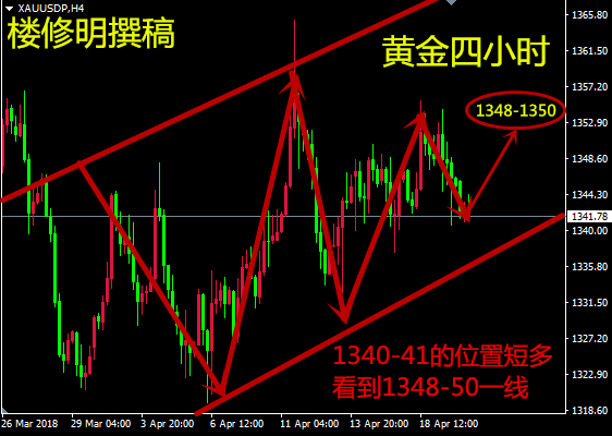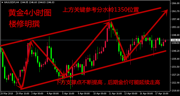 黄金市场动态解析:周三(4月18日)亚盘早间,金价开盘走低,随后收复跌幅,现报1345.71美元。地缘局势本周并没有进一步升温,黄金的避险需求有所降低,美国经济数据相对乐观,美联储官员讲话偏向鹰派,美债收益率涨至逾十年高位,给美元提供可支撑,美国股市也温和上涨,对金价不利;金价昨日走势呈V型反转,收复日内跌势。