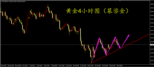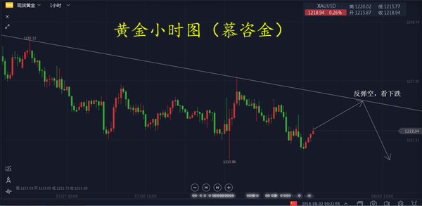我们或许不是最暴利的,单却是最稳的,这个市场中不缺少短时间暴利的神话,但往往很快销声匿迹,退出历史的舞台。投资是一项终生的事业,我们需要比拼的是谁更稳健,才能走到更远。我希望我们的朋友们树立一个正确的投资观念,这让我们受益终生。大家早上好! 黄金日线周三再次收阴,周二的1213探底回升并没有在周三得以延续,金价继续维持偏弱运行。黄金一直维持弱势调整的时间较长了,低位整理来回震荡,筑底走势明显,但是不排除金价或将还有一波加速下跌。凌晨两点美联储在8月将联邦基金利率目标区间维持在1.75%-2%,符合市场预期。本次会议声明较为鹰派,委员会一致同意维持利率不变,确认了渐进加息路径,并罕见地将对经济