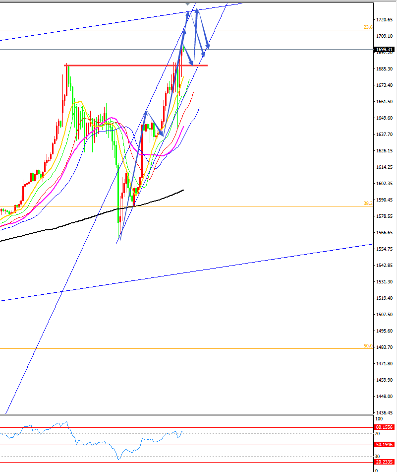黄金分析策略: 方向:多 目标:1715/1735 阻力:1709/1715/1723 支撑:1686/1680/1673 拐点:1735 多空分水岭:1670 今日操作:低多布局为主,高空辅助 纪律是一百多年以来交易市场上各种成功和失败经验的高度总结,是用无数金钱和心血所换来的成果。翻开交易历史,你就会发现市场有时是多么幼稚可笑,多少人曾经犯过多少幼稚可笑的错误,然而现在和将来这些幼稚可笑的事件必然会重演,因为虽然市场在前进,时间在前进,但人性不会变,人类对金钱的贪婪和恐惧不会变,人类想征服自然和市场的欲望不会变,绝大部分的人很容易忘记历史,也不愿意去看看历史,这导