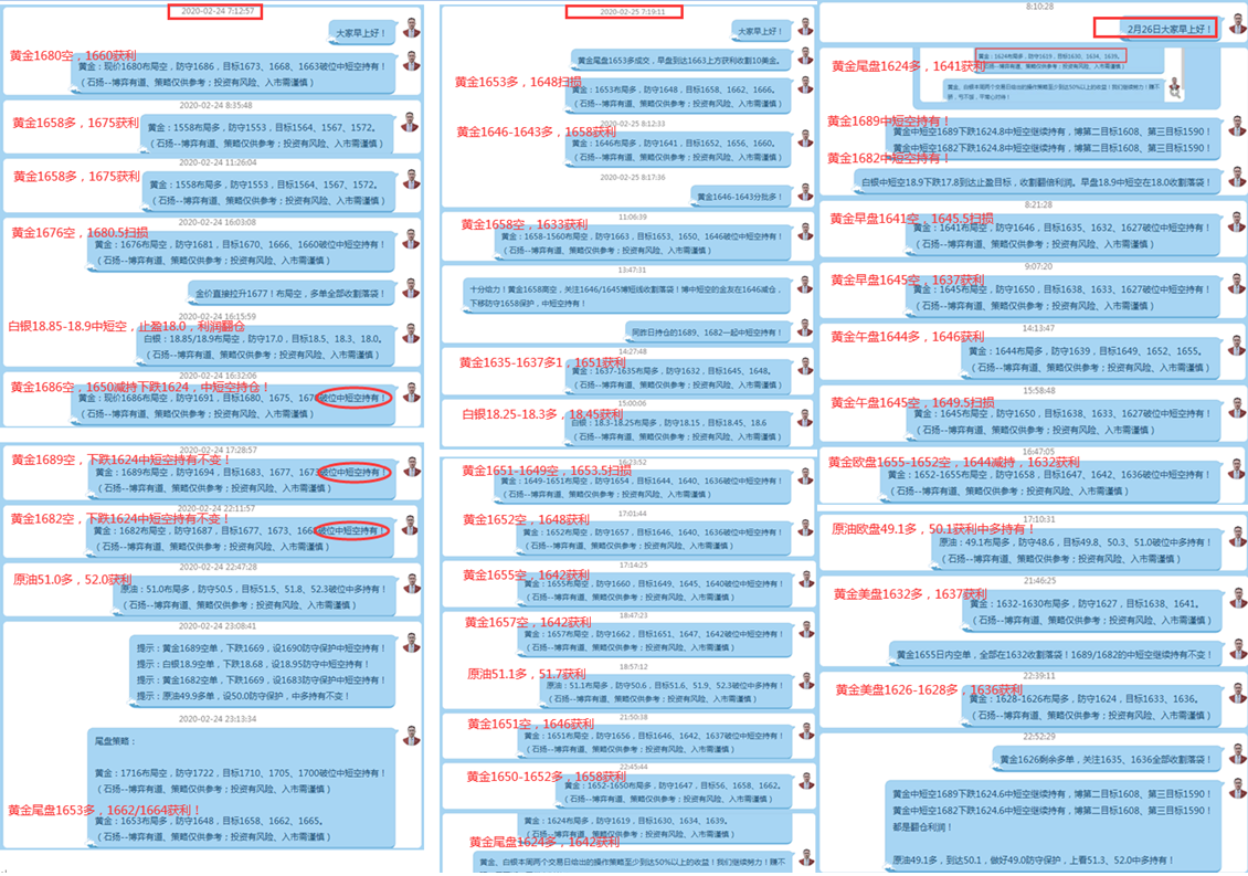 黄金分析策略: 方向:空 目标:中短空 阻力:1673/1678/1683 支撑:1653/1648/1643 拐点:1650 多空分水岭:1673 今日操作:高空中短空为主,低多辅助 如果你在交易中赚了钱,你就能挺直身板,接受人们的赞赏并得到财务上的报偿。但如果你遭受了损失,你将单独承担责任。在市场交易中你必须有信心,因为所有“损失”中最严重的一种就是“丧失”对自己独立、成功的交易能力的信心。如果你对此失去信心,除了结清不利头寸以限制导致损失的暴露头寸外,你或许压根儿就不应该进行任何交易。 跟随笔者交易,请严格做好以下四点: 第一跟随策略的进场价位进场,
