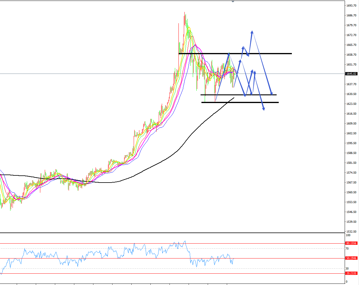 黄金分析策略: 方向:空 目标:中短空 阻力:1664/1672/1680 支撑:1653/1648/1643 拐点:1640 多空分水岭:1672 今日操作:高空中短空为主,低多辅助 信心一旦丧失就再无决策的勇气,所以交易员常说“亏掉资金还可以重头再来,如果信心亏掉了就再也无法重头再来了”。更有甚者,有的投资者在连续亏损之后方寸大乱,毫无理智可言,急于捞回损失,在市场没有交易机会的时候,强行频繁交易,最终彻底被市场淘汰。因此,在任何时候,交易者都要牢记资金管理和交易策略的重要性。当你在市场分析方面已经达到一定水平的时候,就要及时将重点转移到交易策略和资金管理上来,