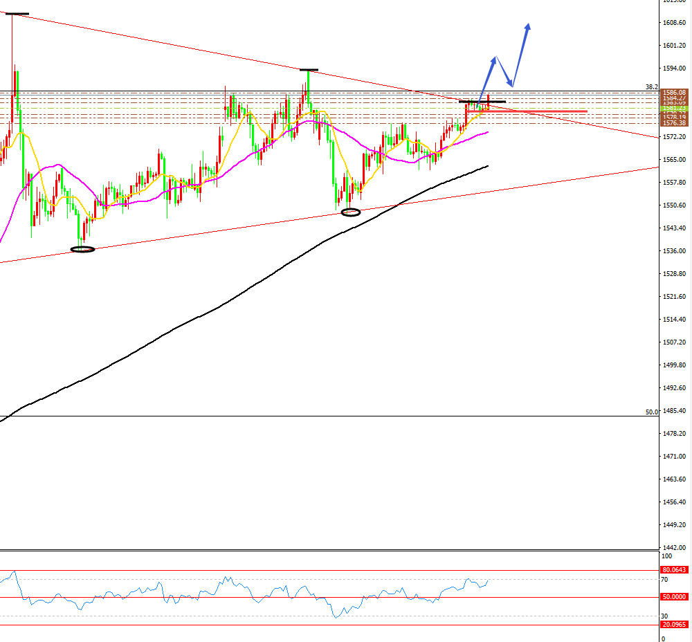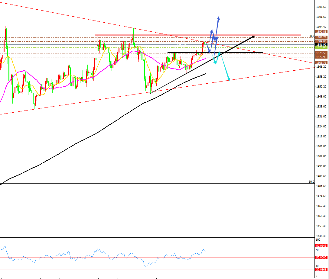 黄金分析策略: 方向:多 目标:1590/1596 阻力:1586/1590/1596 支撑:1575/1570/1565 拐点:1586 多空分水岭:1575 今日操作:低多布局为主,高空辅助 执行力是一切的关键,执行能力只能从执行中获得,不可能通过思考获得。只有把知识和执行结合起来,你才能拥有知行合一的能力,你才能真正强大!知行合一,钢铁般的纪律,是一致性策略的前提,是步入投机成功的不二法门。执行能力包括执行的速度、法度、力度。执行的速度要求我们要在第一时间执行计划内的操作。执行的法度就是我们的执行是否规范是否准确的体现。执行的力度表现为一种坚强的意志,一种对目