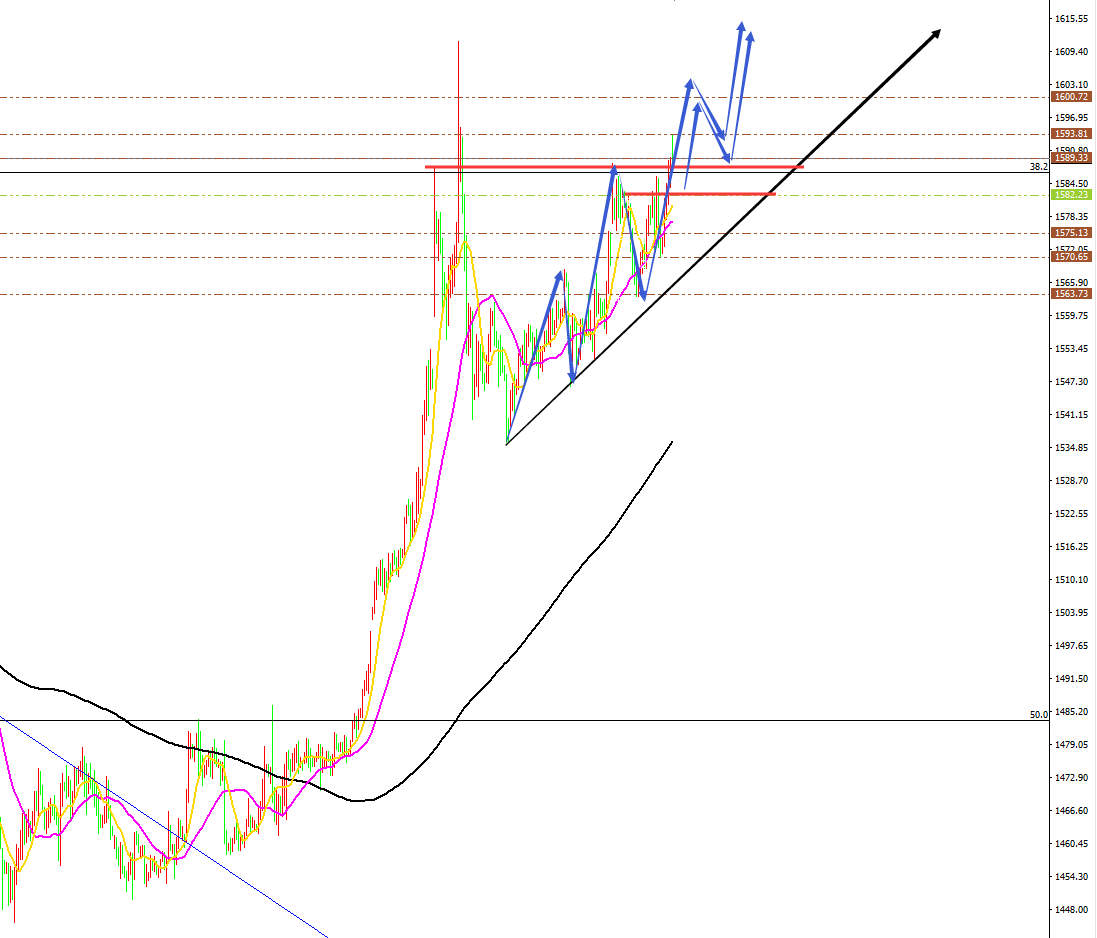黄金分析策略: 方向:多 目标:1593/1600 阻力:1588/1593/1600 支撑:1582/1577/1572 拐点:1593 多空分水岭:1582 今日操作:低多为主,高空辅助 如果没有规则,金融大鳄进来之后,一定是以大欺小、以强欺弱。如果你是池塘里的一只鸭子,由于暴雨的缘故水面上升,你开始在水的世界之中上福但此时你却以为上浮的是你自己,而不是池塘。如果市场总是有效的,我只会成为一个在大街上手拎马口铁罐的流浪汉。生机总在绝望时出现,当你忍无可忍时再忍五分钟;当你想放弃时,再试一次吧!市场就像上帝一样,帮助那些自己帮助自己的人,但与上帝不一样的地方是,他不