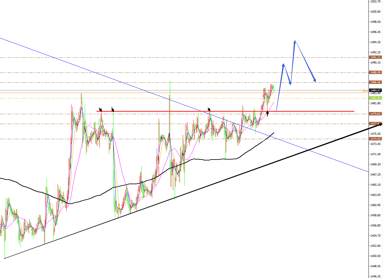 黄金分析策略: 方向:多 目标:1493/1500 阻力:1490/1494/1500 支撑:1480/1476/1471 拐点:1500 多空分水岭:1480 今日操作:低多为主,高空辅助 如果没有规则,金融大鳄进来之后,一定是以大欺小、以强欺弱。如果你是池塘里的一只鸭子,由于暴雨的缘故水面上升,你开始在水的世界之中上福但此时你却以为上浮的是你自己,而不是池塘。如果市场总是有效的,我只会成为一个在大街上手拎马口铁罐的流浪汉。生机总在绝望时出现,当你忍无可忍时再忍五分钟;当你想放弃时,再试一次吧!市场就像上帝一样,帮助那些自己帮助自己的人,但与上帝不一样的地方是,他不