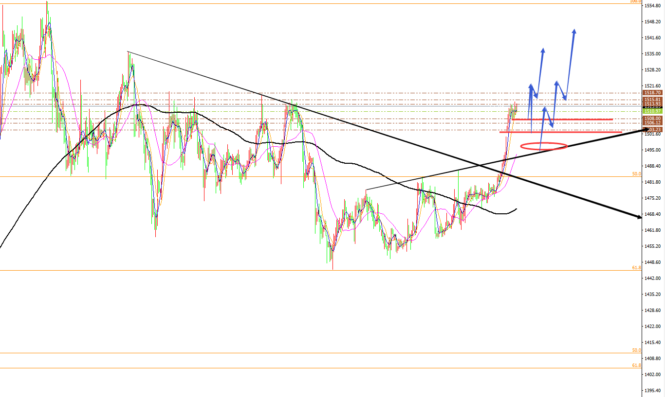 黄金分析策略: 方向:多 目标:1522/1526 阻力:1518/1522/1526 支撑:1510/1507/1503 拐点:1522 多空分水岭:1500 今日操作:低多为主,高空辅助 如果没有规则,金融大鳄进来之后,一定是以大欺小、以强欺弱。如果你是池塘里的一只鸭子,由于暴雨的缘故水面上升,你开始在水的世界之中上福但此时你却以为上浮的是你自己,而不是池塘。如果市场总是有效的,我只会成为一个在大街上手拎马口铁罐的流浪汉。生机总在绝望时出现,当你忍无可忍时再忍五分钟;当你想放弃时,再试一次吧!市场就像上帝一样,帮助那些自己帮助自己的人,但与上帝不一样的地方是,他不