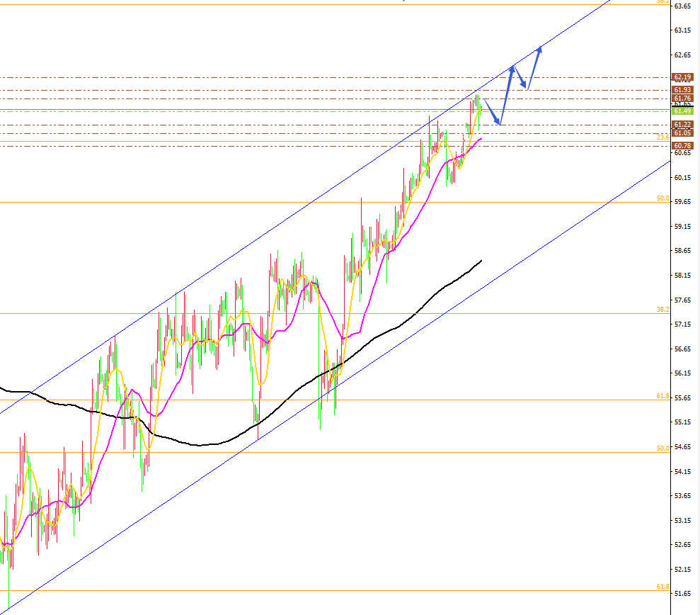 原油分析策略: 方向:震荡 目标:61.0/62.0 阻力:62.0/62.6/63.0 支撑:61.0/60.6/60.0 拐点:61.0 多空分水岭:62.0 今日操作:低多为主,高空辅助 如果没有规则,金融大鳄进来之后,一定是以大欺小、以强欺弱。如果你是池塘里的一只鸭子,由于暴雨的缘故水面上升,你开始在水的世界之中上福但此时你却以为上浮的是你自己,而不是池塘。如果市场总是有效的,我只会成为一个在大街上手拎马口铁罐的流浪汉。生机总在绝望时出现,当你忍无可忍时再忍五分钟;当你想放弃时,再试一次吧!市场就像上帝一样,帮助那些自己帮助自己的人,但与上帝不一样的地方是,