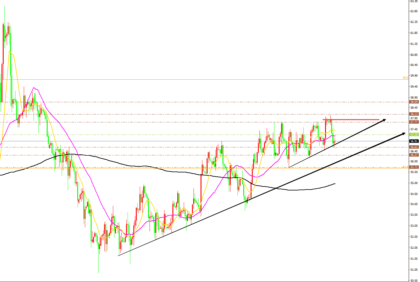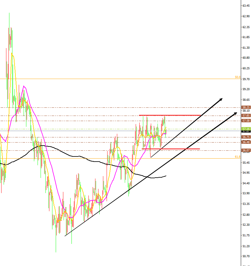 原油分析策略: 方向:多 目标:57.8/58.8 阻力:57.5/58.3/58.8 支撑:56.3/55.8/55.0 拐点:57.5 多空分水岭:56.0 今日操作:主多,辅空 如果没有规则,金融大鳄进来之后,一定是以大欺小、以强欺弱。如果你是池塘里的一只鸭子,由于暴雨的缘故水面上升,你开始在水的世界之中上福但此时你却以为上浮的是你自己,而不是池塘。如果市场总是有效的,我只会成为一个在大街上手拎马口铁罐的流浪汉。生机总在绝望时出现,当你忍无可忍时再忍五分钟;当你想放弃时,再试一次吧!市场就像上帝一样,帮助那些自己帮助自己的人,但与上帝不一样的地方是,他不会原谅