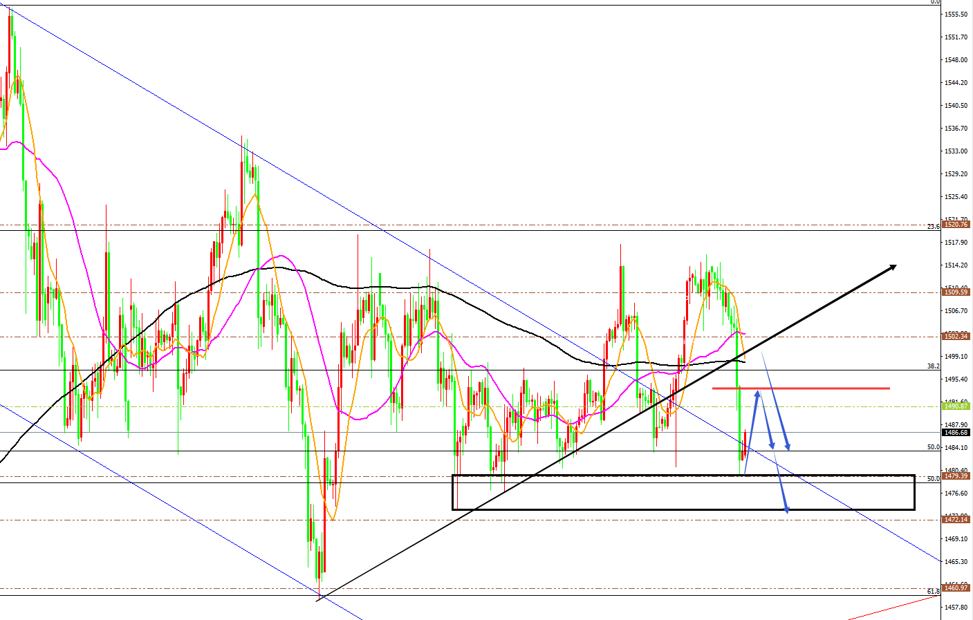 黄金分析策略: 方向:空 目标:1473/1462 阻力:1490/1494/1500 支撑:1478/1473/1462 拐点:1478 多空分水岭:1494 今日操作:高空布局位,低多辅助 如果没有规则,金融大鳄进来之后,一定是以大欺小、以强欺弱。如果你是池塘里的一只鸭子,由于暴雨的缘故水面上升,你开始在水的世界之中上福但此时你却以为上浮的是你自己,而不是池塘。如果市场总是有效的,我只会成为一个在大街上手拎马口铁罐的流浪汉。生机总在绝望时出现,当你忍无可忍时再忍五分钟;当你想放弃时,再试一次吧!市场就像上帝一样,帮助那些自己帮助自己的人,但与上帝不一样的地方是,