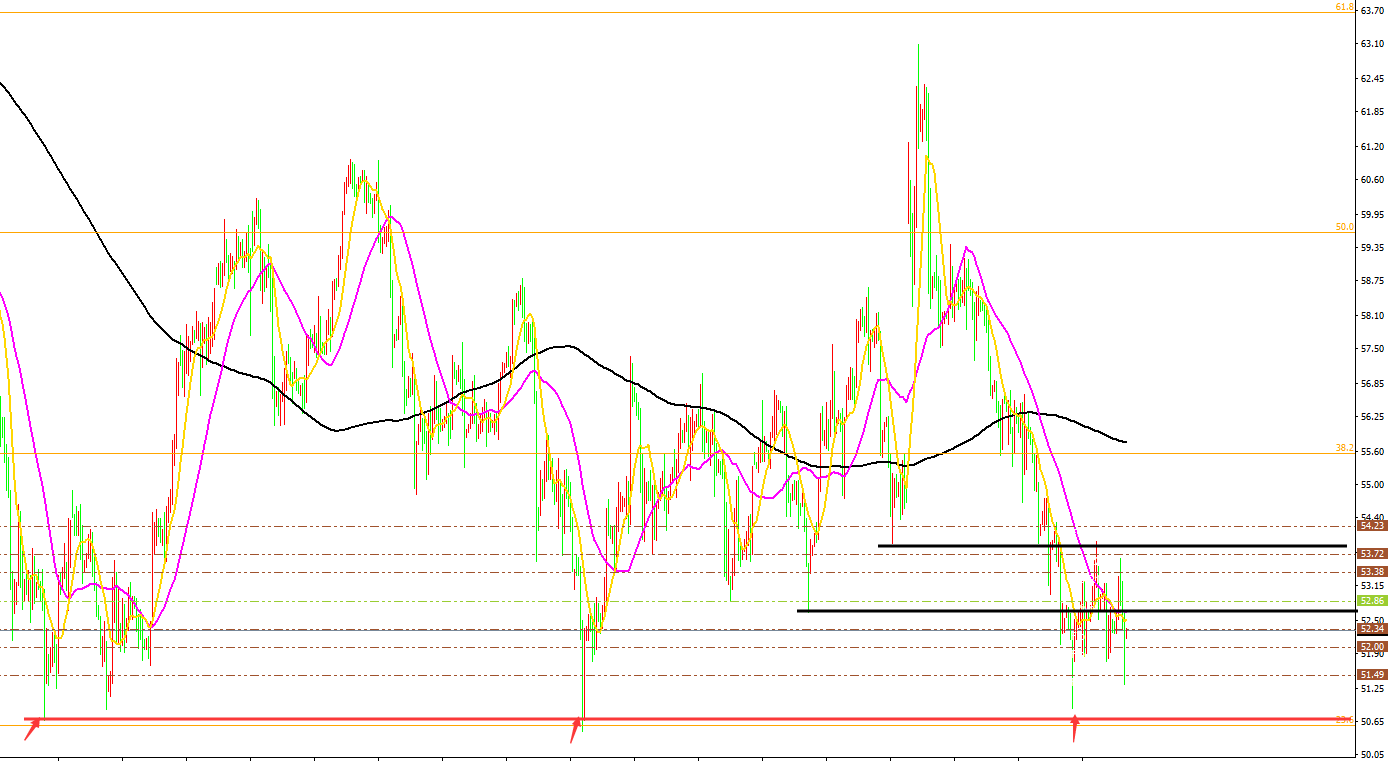 原油分析策略 方向:空 目标:51.0/50.0 阻力:52.8/53.5/54.0 支撑:51.7/51.0/50.5 拐点:51.0 多空分水岭:53.5 今日操作:高空为主,低多辅助。 如果没有规则,金融大鳄进来之后,一定是以大欺小、以强欺弱。如果你是池塘里的一只鸭子,由于暴雨的缘故水面上升,你开始在水的世界之中上福但此时你却以为上浮的是你自己,而不是池塘。如果市场总是有效的,我只会成为一个在大街上手拎马口铁罐的流浪汉。生机总在绝望时出现,当你忍无可忍时再忍五分钟;当你想放弃时,再试一次吧!市场就像上帝一样,帮助那些自己帮助自己的人,但与上帝不一样的地方