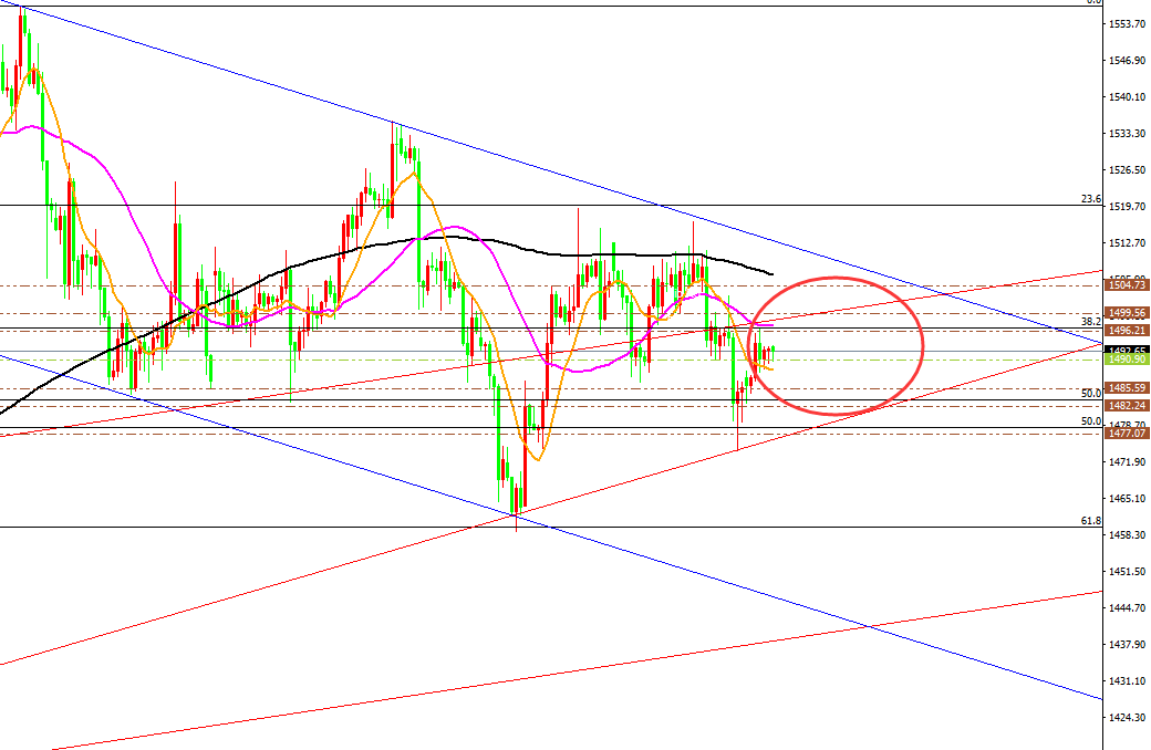 黄金分析策略: 方向:空 目标:1482/1476 阻力: 1500/1506/1511 支 撑: 1490/1486/1478 拐点:1490 多空分水岭:1500 今日操作:高空布局为主,低多辅助 如果没有规则,金融大鳄进来之后,一定是以大欺小、以强欺弱。如果你是池塘里的一只鸭子,由于暴雨的缘故水面上升,你开始在水的世界之中上福但此时你却以为上浮的是你自己,而不是池塘。如果市场总是有效的,我只会成为一个在大街上手拎马口铁罐的流浪汉。生机总在绝望时出现,当你忍无可忍时再忍五分钟;当你想放弃时,再试一次吧!市场就像上帝一样,帮助那些自己帮助自己的人,但与上帝不一样