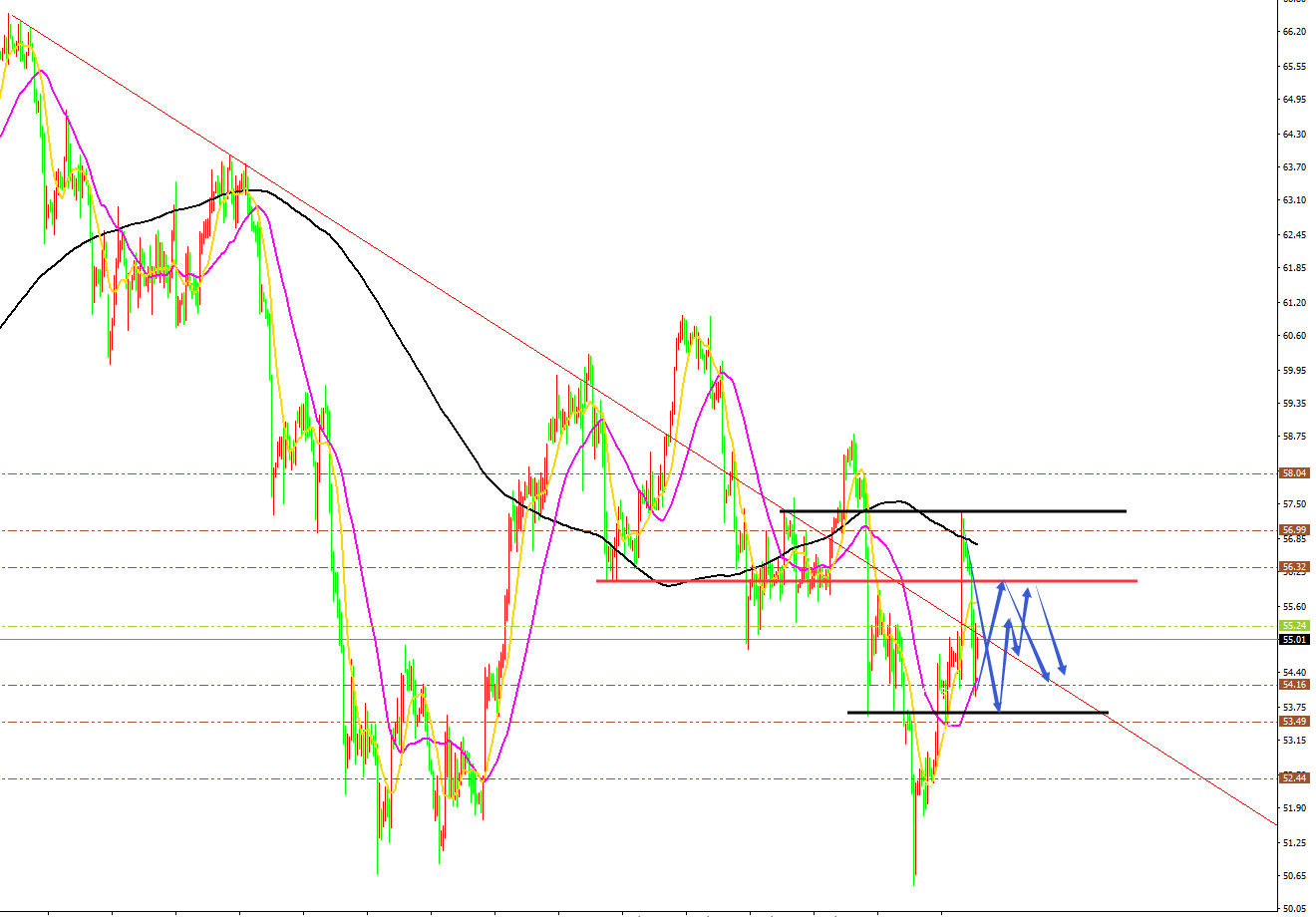 原油分析策略: 方向:多 目标:56.8/57.4 阻力:56.3/56.8/57.4 支撑:55.3/54.7/54.2 拐点:54.0 多空分水岭:55.3 今日操作:低多为主,高空辅助。 如果没有规则,金融大鳄进来之后,一定是以大欺小、以强欺弱。如果你是池塘里的一只鸭子,由于暴雨的缘故水面上升,你开始在水的世界之中上福但此时你却以为上浮的是你自己,而不是池塘。如果市场总是有效的,我只会成为一个在大街上手拎马口铁罐的流浪汉。生机总在绝望时出现,当你忍无可忍时再忍五分钟;当你想放弃时,再试一次吧!市场就像上帝一样,帮助那些自己帮助自己的人,