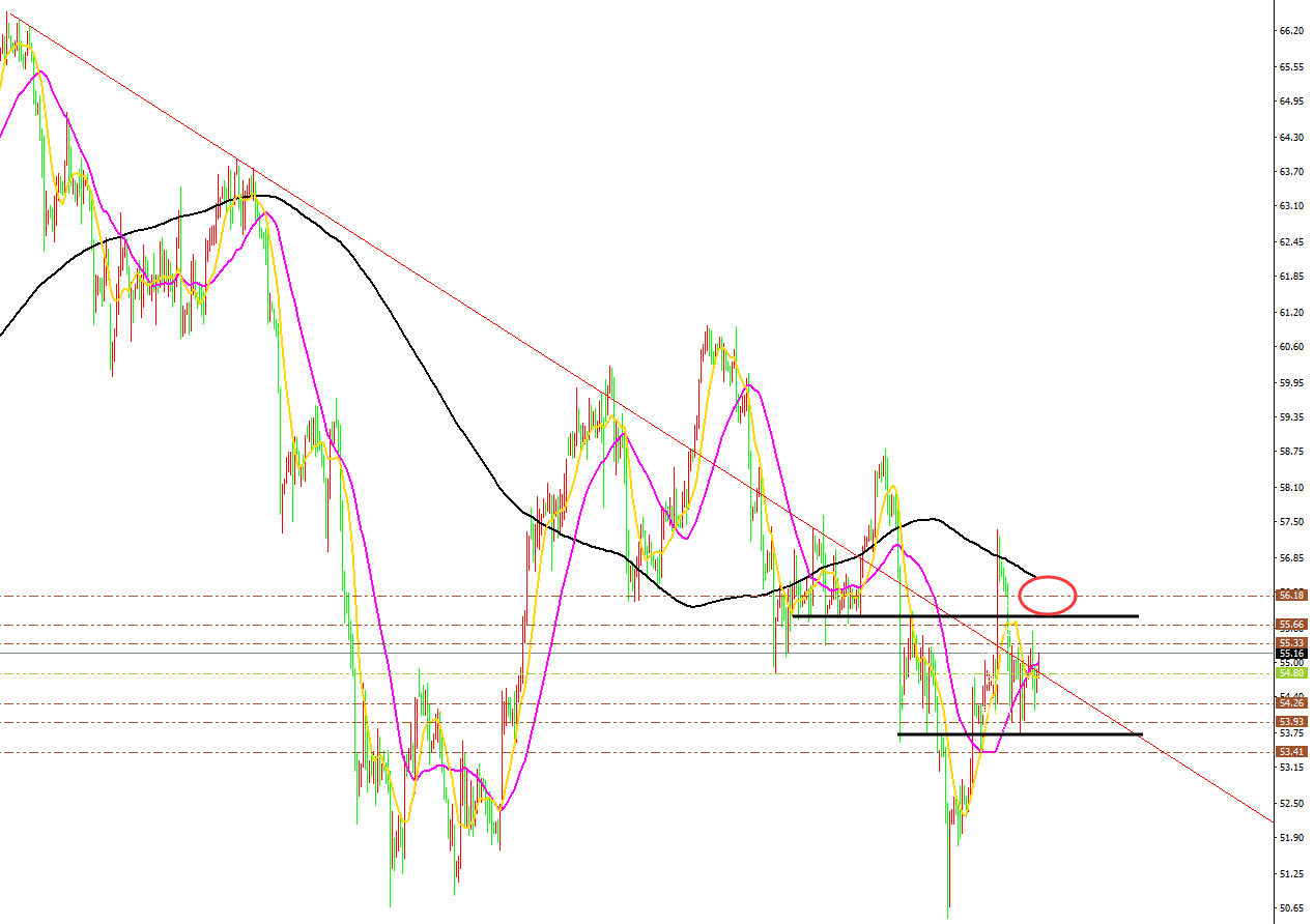原油分析策略: 方向:短多 目标:55.6/56.3 阻力:55.6/56.0/56.6 支撑:54.8/54.3/53.9 拐点:56.3 多空分水岭:54.2 今日操作:低多为主,高空辅助。 如果没有规则,金融大鳄进来之后,一定是以大欺小、以强欺弱。如果你是池塘里的一只鸭子,由于暴雨的缘故水面上升,你开始在水的世界之中上福但此时你却以为上浮的是你自己,而不是池塘。如果市场总是有效的,我只会成为一个在大街上手拎马口铁罐的流浪汉。生机总在绝望时出现,当你忍无可忍时再忍五分钟;当你想放弃时,再试一次吧!市场就像上帝一样,帮助那些自己帮助自