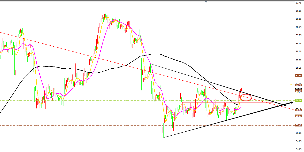 原油分析策略: 方向:震荡 目标:56.5、56.0/57.8、58.5 阻力:57.4-57.8-58.5。 支撑:56.5-56.0-55.5。 小区间:56.5-57.8。 大区间:56.0-58.5。 今日操作:高空为主,低多辅助。 如果没有规则,金融大鳄进来之后,一定是以大欺小、以强欺弱。如果你是池塘里的一只鸭子,由于暴雨的缘故水面上升,你开始在水的世界之中上福但此时你却以为上浮的是你自己,而不是池塘。如果市场总是有效的,我只会成为一个在大街上手拎马口铁罐的流浪汉。生机总在绝望时出现,当你忍无可忍时再忍五分钟;当你想放弃时,再试一次吧!市场就像上帝一样,帮助那些自己帮助自
