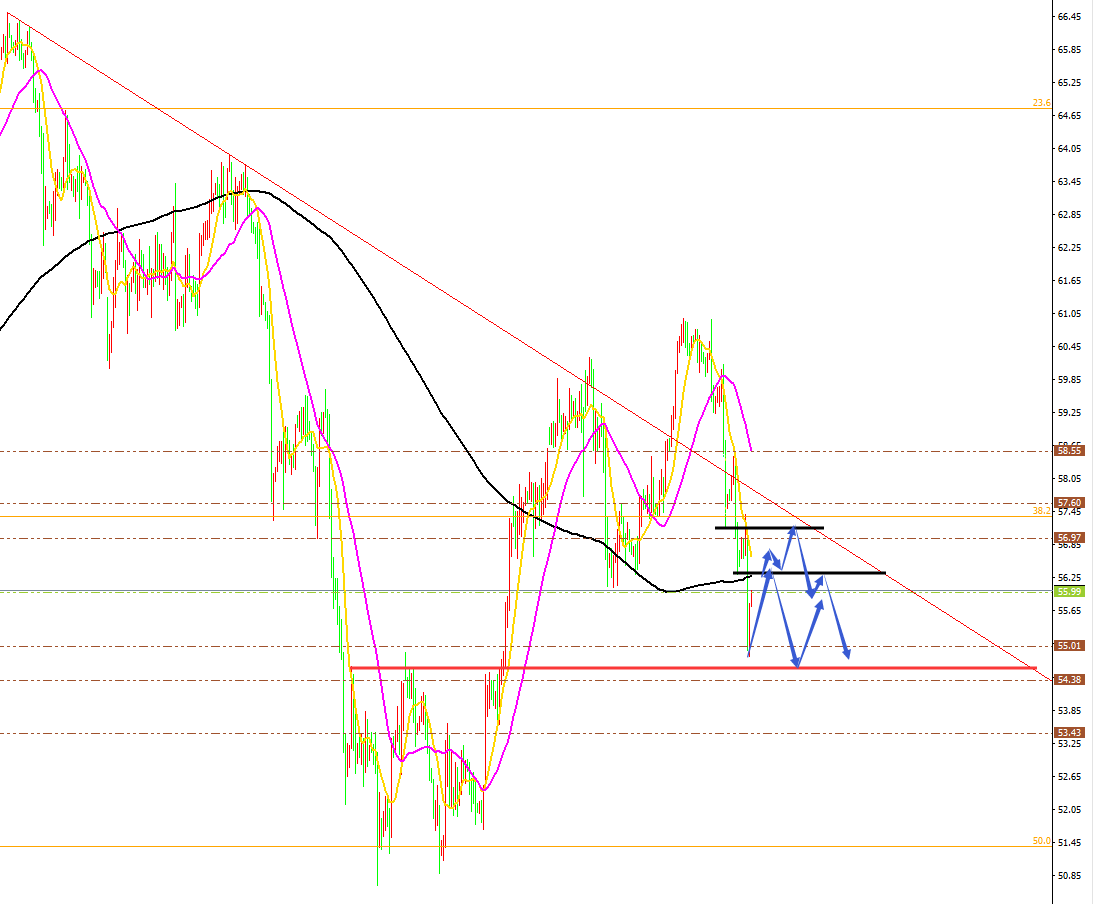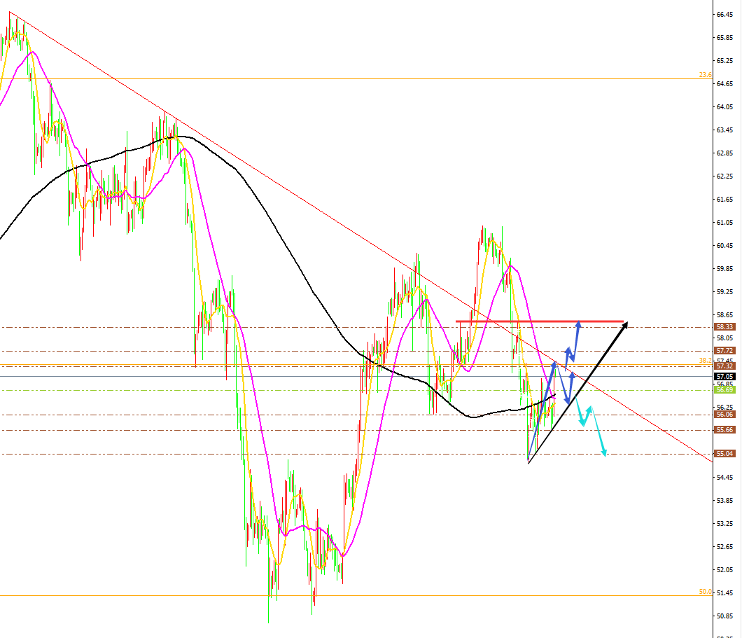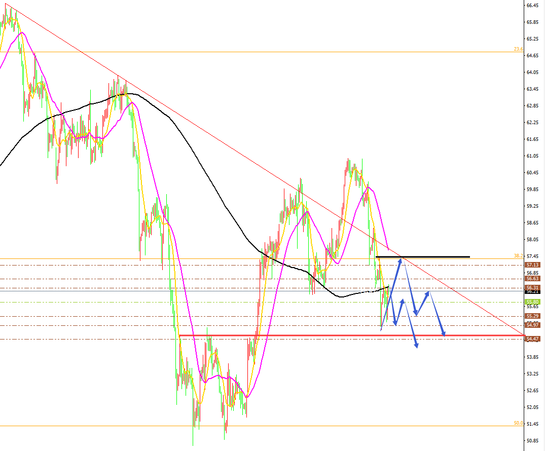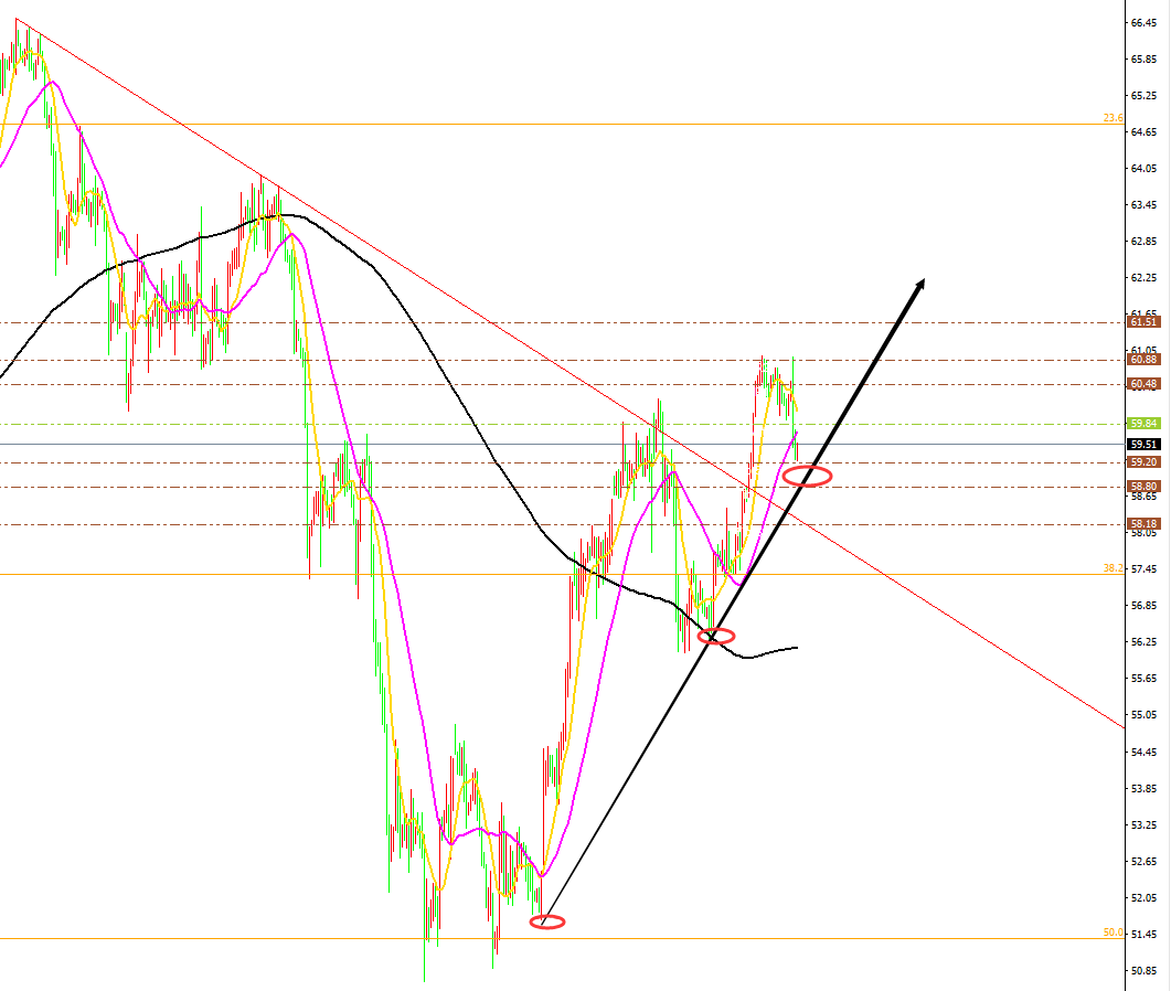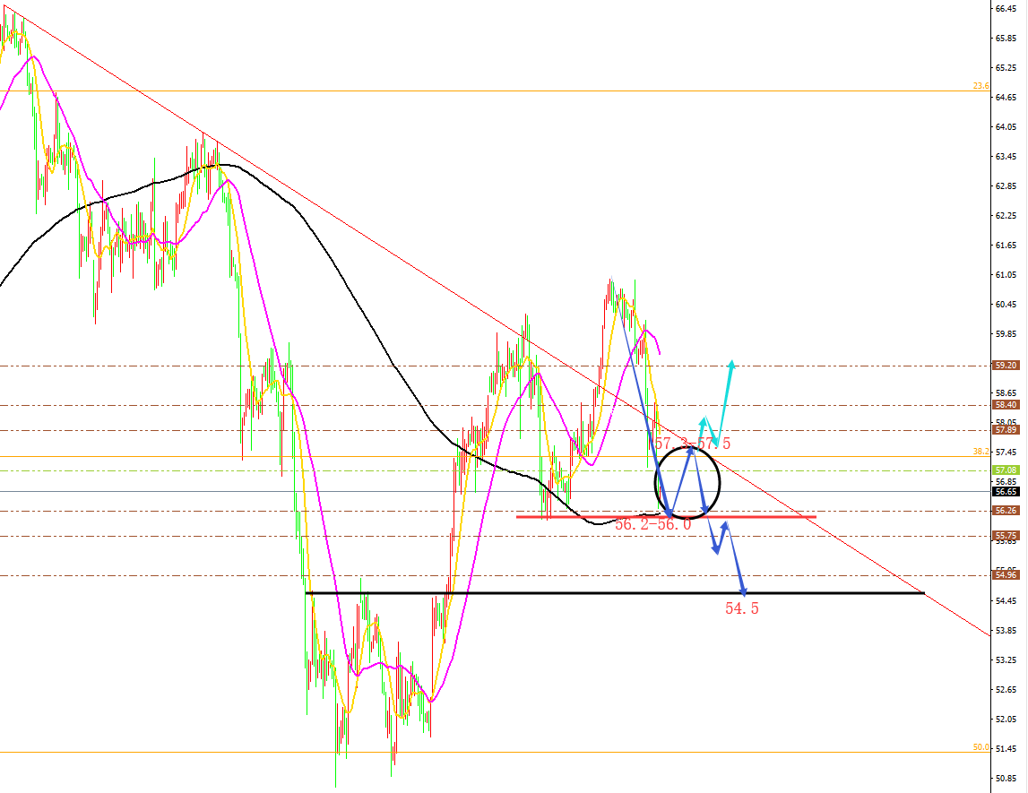 原油分析策略: 方向:看空 目标:55.3、54.5 阻力:57.0-57.5-58.0。 支撑:56.0-55.3-54.5。 小区间:55.3-57.3。 大区间:54.5-57.5。 今日操作:高空为主,低多辅助。 如果没有规则,金融大鳄进来之后,一定是以大欺小、以强欺弱。如果你是池塘里的一只鸭子,由于暴雨的缘故水面上升,你开始在水的世界之中上福但此时你却以为上浮的是你自己,而不是池塘。如果市场总是有效的,我只会成为一个在大街上手拎马口铁罐的流浪汉。生机总在绝望时出现,当你忍无可忍时再忍五分钟;当你想放弃时,再试一次吧!市场就像上帝一样,帮助那些自己帮助自己的人,但与上帝不一