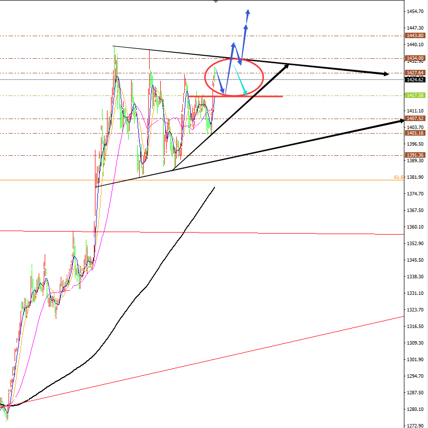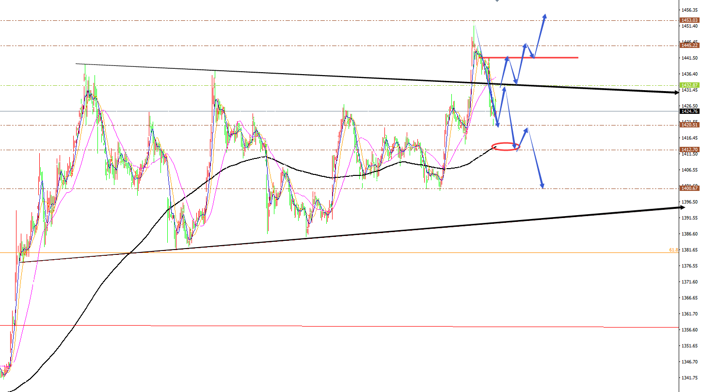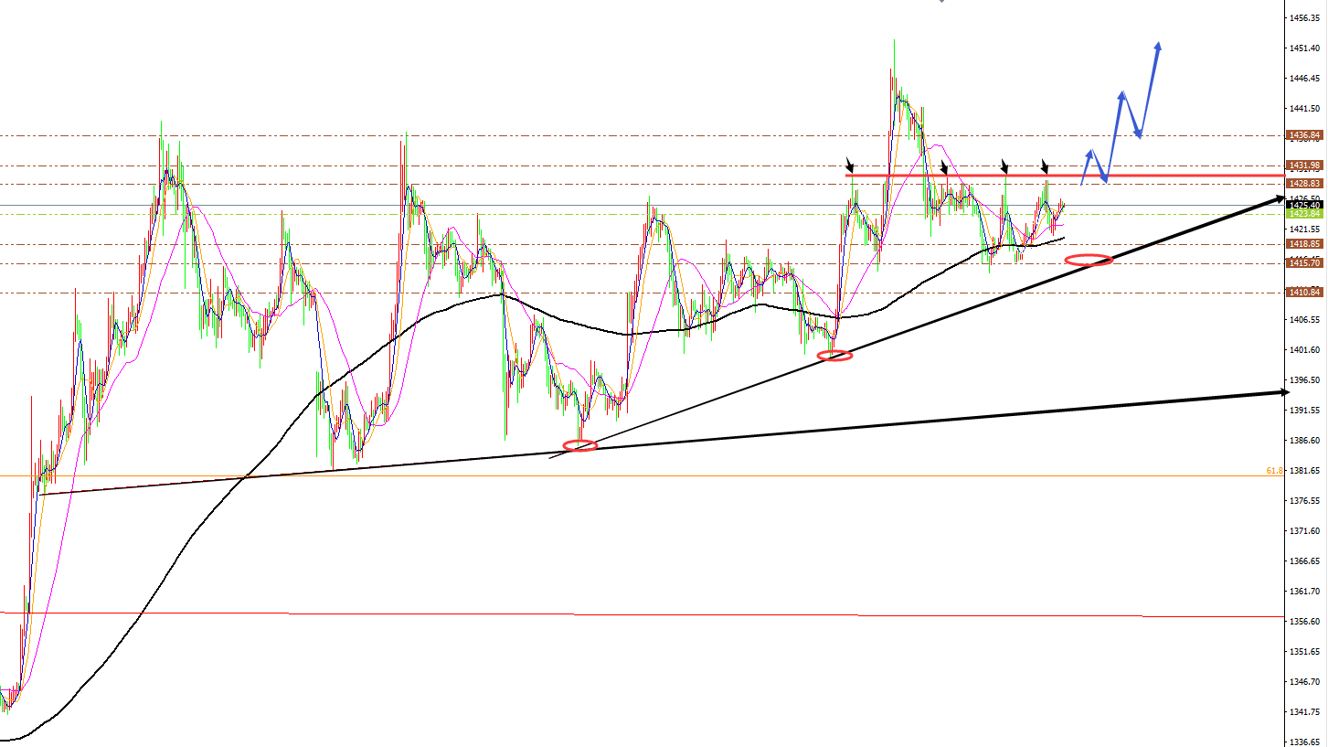黄金分析策略: 方向:看多 目标:1435、1440 阻力:1330-1435-1440 支撑: 1420-1416-1411 小区间:1420-1435 大区间:1411-1441 今日操作:短线高空辅助,中线低多为主。 如果没有规则,金融大鳄进来之后,一定是以大欺小、以强欺弱。如果你是池塘里的一只鸭子,由于暴雨的缘故水面上升,你开始在水的世界之中上福但此时你却以为上浮的是你自己,而不是池塘。如果市场总是有效的,我只会成为一个在大街上手拎马口铁罐的流浪汉。生机总在绝望时出现,当你忍无可忍时再忍五分钟;当你想放弃时,再试一次吧!市场就像上帝一样,帮助那些自己帮助自己的人,但与上帝
