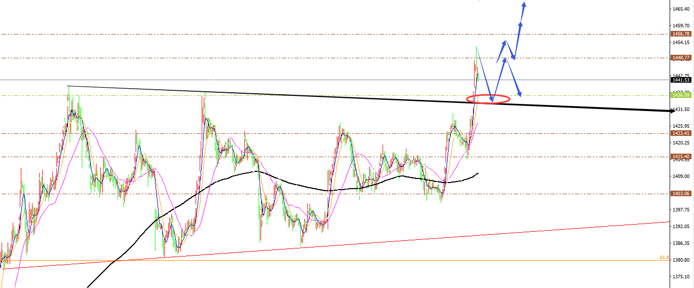黄金分析策略: 方向:看多 目标:1453、1458、1465 阻力:1453-1458-1465 支撑: 1440-1436-1431 小区间:1438-1458 大区间:1435-1465 今日操作:短线高空辅助,中线低多为主。 如果没有规则,金融大鳄进来之后,一定是以大欺小、以强欺弱。如果你是池塘里的一只鸭子,由于暴雨的缘故水面上升,你开始在水的世界之中上福但此时你却以为上浮的是你自己,而不是池塘。如果市场总是有效的,我只会成为一个在大街上手拎马口铁罐的流浪汉。生机总在绝望时出现,当你忍无可忍时再忍五分钟;当你想放弃时,再试一次吧!市场就像上帝一样,帮助那些自己帮助