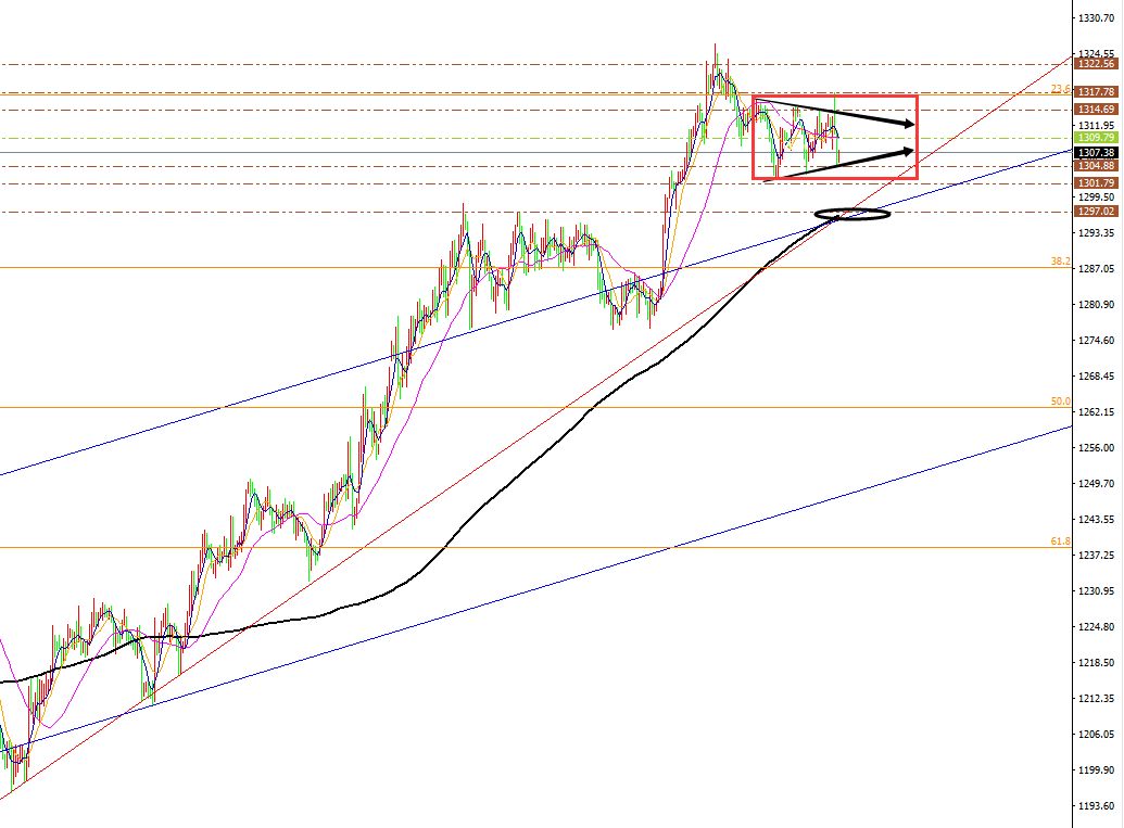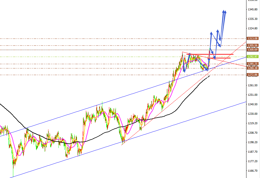 黄金 、原油分析策略: 阻力:1310-1315-1320。 支撑:1303-1297-1293。 小区间:1300—1310。 大区间:1295—1315。 今日操作:低多、中多布局,短线高空辅助。 最新日线图MA10、MA30日均线粘合后,10日均线拐头向上击穿30日均线形成金叉,30日均线击穿200日均线1250上移至1299, 日线图MA10日均线受阻1314后出现向下拐头下移至1310 。 黄金纽约收盘价站上200日均线的中期多空分水岭1250后,将继续延续多头运行,打开第一轮上涨。目前 金价 刺破1300关口将打开第二轮上涨空间,已经第二轮的上涨。金价中期我们坚守看涨不变