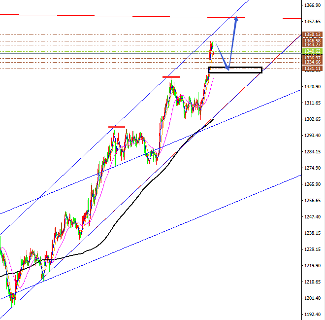 黄金 、原油分析策略: 阻力:1348-1353-1358。 支撑:1335-1330-1326。 小区间:1335—1345。 大区间:1330—1360。 今日操作:低多、中多布局,短线高空辅助。 最新日线图MA10、MA30日均线粘合后,10日均线拐头向上击穿30日均线形成金叉,30日均线击穿200日均线1250上移至1305, 目前最新MA10日均线上移1319,纽约收盘价重新站上10日均线位1310-1313支撑则后市继续看涨,多头结构表现出色。MA30日均线支撑1301与MA30日均线保持同步开口向上。 金价 中期我们坚守看涨不变,中期看涨目标关注1356、1380,中短