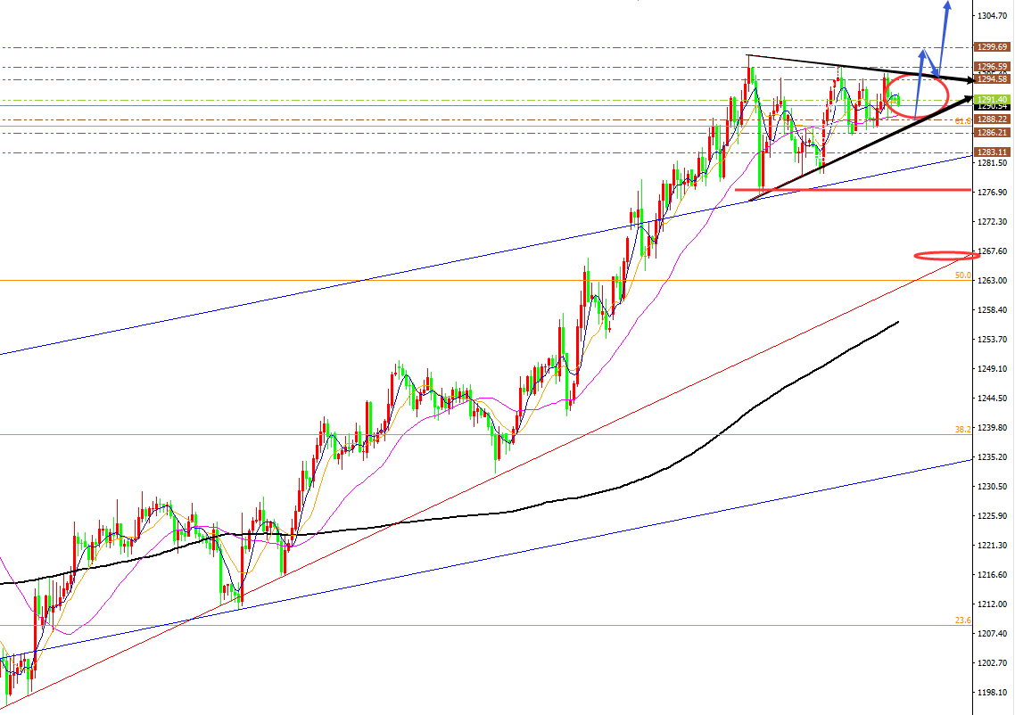黄金 、原油分析策略: 阻力:1298-1303-1308。 支撑:1286-1280-1276。 小区间:1286—1296。 大区间:1280—1300。 今日操作:低多、中多布局,短线高空辅助。 最新日线图MA10、MA30日均线粘合后目前10日均线拐头向上击穿30日均线形成金叉,10日均线向上拐头上移1290点位,30日均线击穿200日均线1250上移至1270点位,黄金纽约收盘价站上200日均线的中期多空分水岭1250后,将继续延续多头运行,打开新的一轮上涨空间, 金价 中期我们坚守看涨不变,中期看涨目标关注1330、1360,中短线金价继续保持低多中多运行。黄金1160