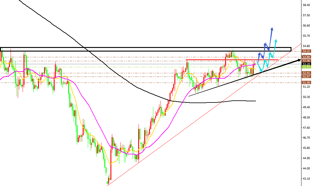 黄金 、原油分析策略: 阻力:1290-1295-1300。 支撑:1280-1273-1266。 小区间:1278—1288。 大区间:1263—1303。 今日操作:低多、中多布局,短线高空辅助。 最新日线图MA10、MA30日均线粘合后目前10日均线拐头向上击穿30日均线形成金叉,30日均线击穿200日均线1250上移至1270关口, 目前日线图 金价 向下破位10日均线支撑1289,纽约收盘价收线MA10均线1289下方,短线金价面临回撤调整。 黄金纽约收盘价站上200日均线的中期多空分水岭1250后,将继续延续多头运行,打开新的一轮上涨空间,金价中期我们坚守看涨不变,中期