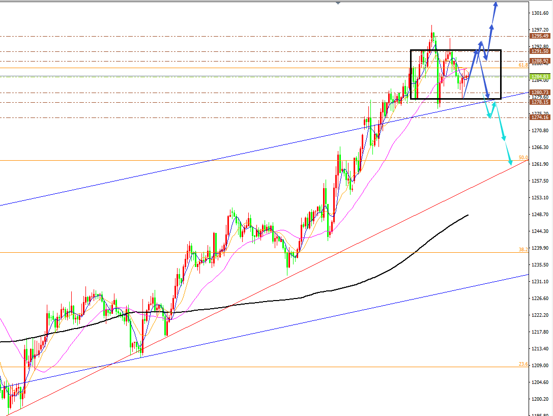 黄金 、原油分析策略: 阻力:1298-1303-1308。 支撑:1288-1283-1276。 小区间:1288—1298。 大区间:1280—1310。 今日操作:低多、中多布局,短线高空辅助。 最新日线图MA10、MA30日均线粘合后目前10日均线拐头向上击穿30日均线形成金叉,10日均线向上拐头上移1285点位,30日均线击穿200日均线1250上移至1257点位,黄金纽约收盘价站上200日均线的中期多空分水岭1250后,将继续延续多头运行,打开新的一轮上涨空间, 金价 中期我们坚守看涨不变,中期看涨目标关注1330、1360,中短线金价继续保持低多中多运行。黄金1160