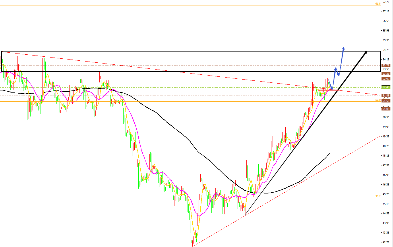 黄金 、原油分析策略: 阻力:1293-1298-1303。 支撑:1283-1278-1273。 小区间:1283—1293。 大区间:1273—1303。 今日操作:低多、中多布局,短线高空辅助。 最新日线图MA10、MA30日均线粘合后目前10日均线拐头向上击穿30日均线形成金叉,10日均线向上拐头上移1277点位,30日均线同步上移位于1250点位,10日均线向上击穿200日均线1250,黄金站上中期多空分水岭1250后打开新的一轮上涨空间, 金价 中期我们坚守看涨不变,中期看涨目标关注1330、1360,中短线金价继续保持低多中多运行。黄金1160/1163、1198、1