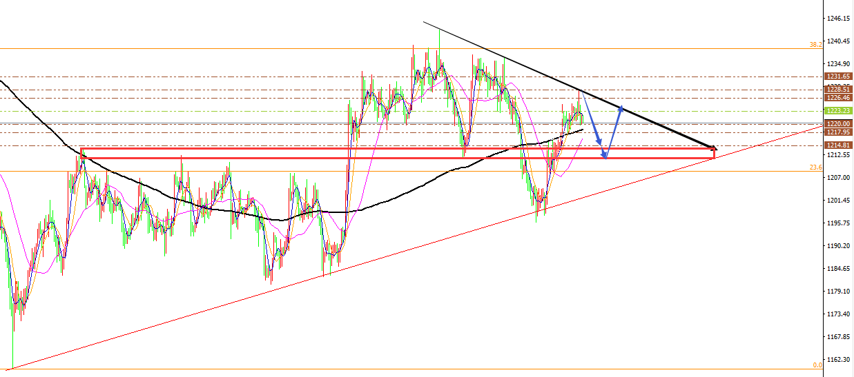 黄金 、原油分析策略: 阻力:1218-1222-1228。 支撑:1210-1205-1202。 小区间:1205—1218。 大区间:1202—1222。 今日操作:低多、中多布局,短线高空辅助。 最新日线图MA10、MA30日均线分别在1220、1222,5日均线向下拐头击穿30、10日均线,短线 金价 继续面临调整,关注1220-1200区间。中短线金价将继续保持低多中多运行。黄金1160/1163、1198、1207中线多单持有不变, 白银 14.0中多单持有不变! 纸白银 3.0-3.1元/克成本, 纸黄金 260元/克做中线持有不变。 黄 金 日线连阴收尾,随