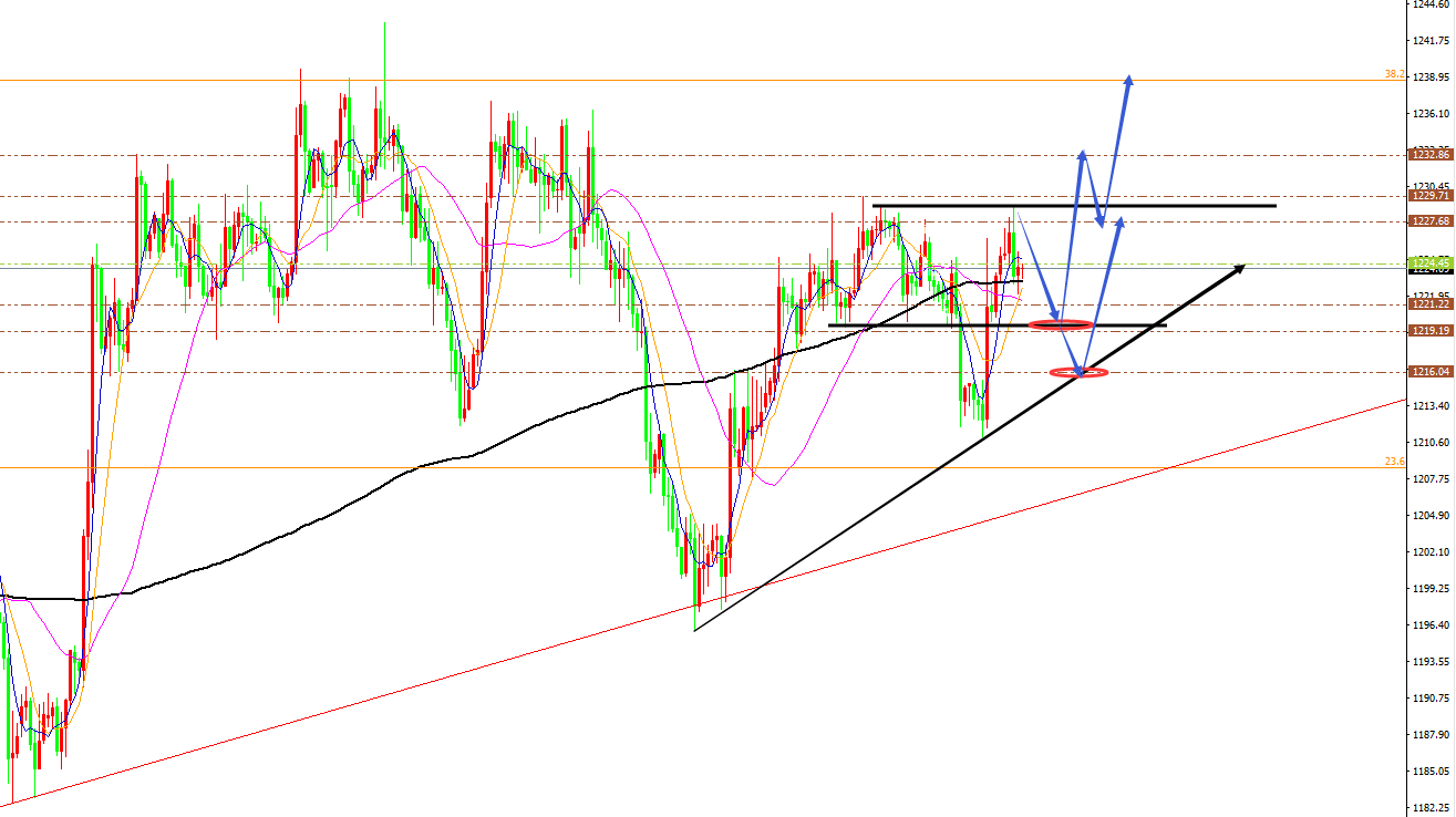 黄金 、原油分析策略: 阻力:1228-1233-1238。 支撑:1218-1213-1208。 小区间:1218—1228。 大区间:1213—1238。 今日操作:低多、中多布局,短线高空辅助。 最新日线图MA10、MA30日均线粘合处于1222点位,后期 金价 上破1228,10日均线向上击穿30日均线形成金叉,则金价本轮调整结束,中期看涨。中短线金价将继续保持低多中多运行。黄金1160/1163、1198、1207中线多单持有不变, 白银 14.0中多单持有不变! 纸白银 3.0-3.1元/克成本, 纸黄金 260元/克做中线持有不变。 黄 金 日线小阳收尾,上方
