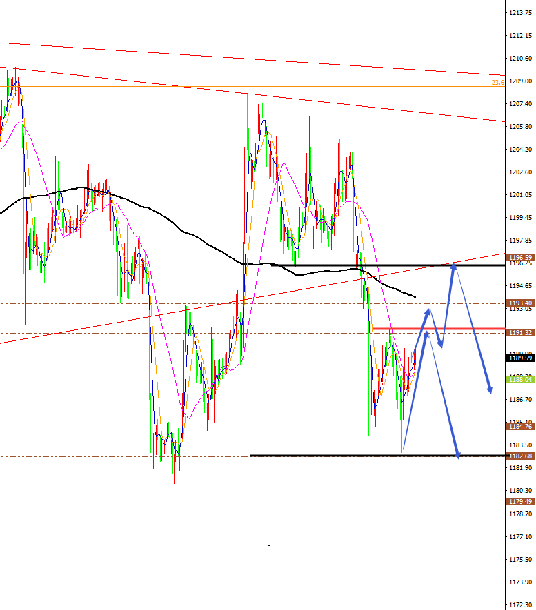 黄金 、原油分析策略: 阻力:1194-1198-1203。 支撑:1183-1177-1172。 小区间:1183—1193。 大区间:1172 —1202。 今日操作:低多、中多布局,短线高空辅助。 最新日线图10日、30日均线价格位于1194、1197,10、30日均线走平后出现开口下移,纽约收盘价重新失守1198、1195的10、30日均线位,日线收线1198下方,保持偏空整理,黄金1160/1163中线多单持有不变, 白银 14.3-14.4中多单持有不变! 纸白银 3.2-3.1元/克成本, 纸黄金 262元/克做中线持有不变。 黄 金 昨日承压1204形成单